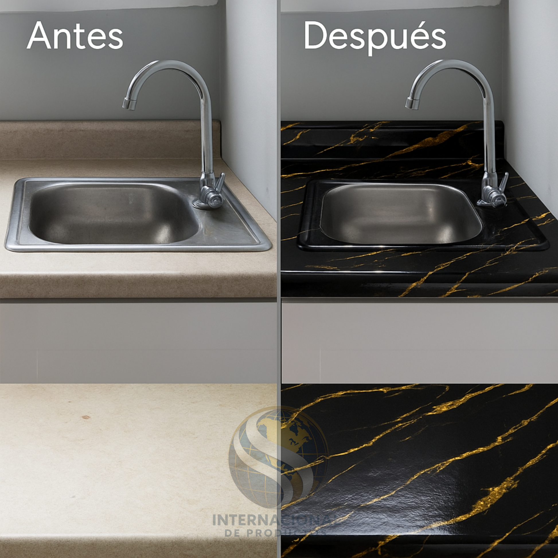 Se adhiere en superficies lisas y limpias: muebles/puertas de cocina o clóset, mesas, repisas, vidrio/espejos, azulejos lisos, pared bien pintada y seca y metal pintado. Evita pared rugosa, humedad y pintura que se pela.